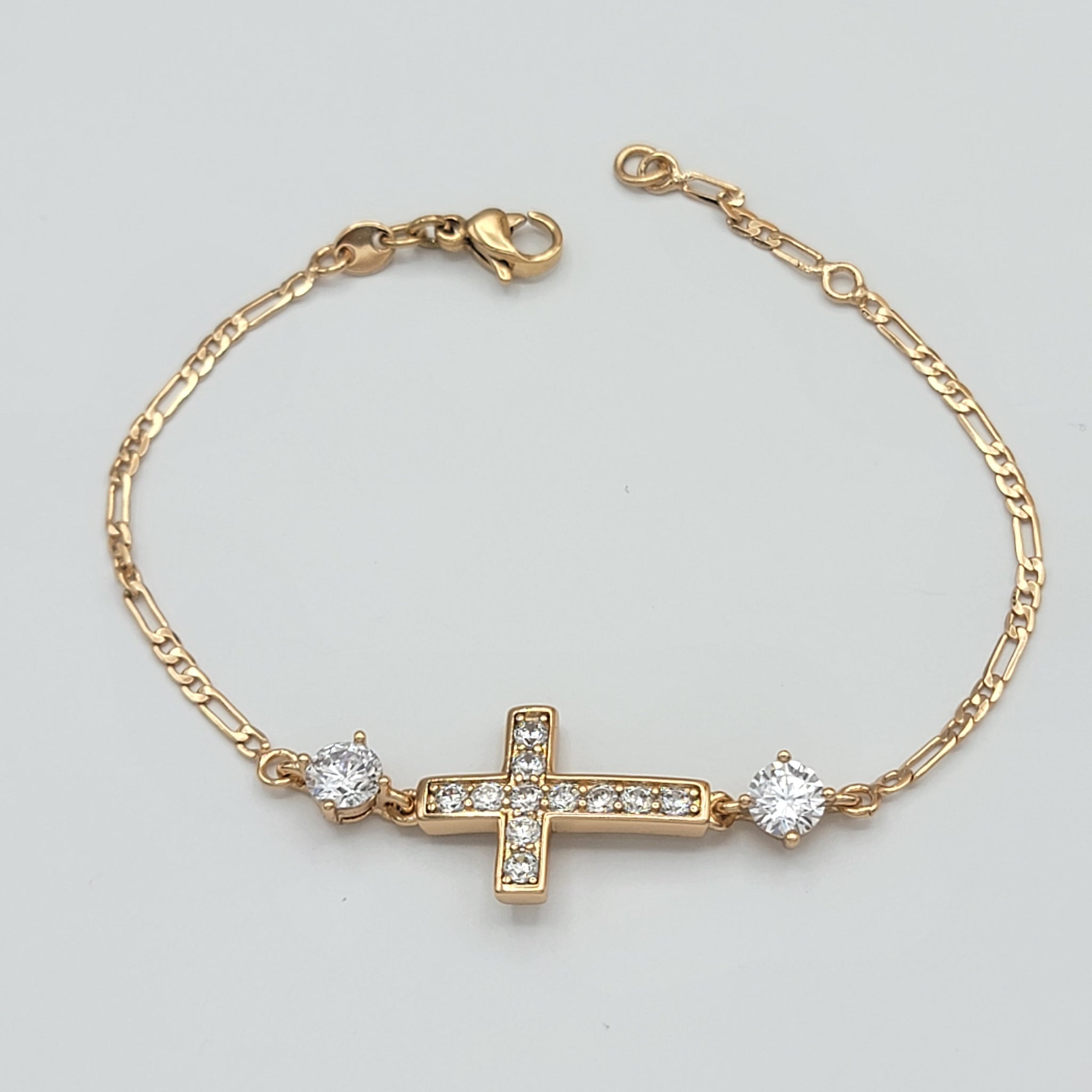 Bracelets - 14K Gold Plated. 3 Crosses. *Premium Q*