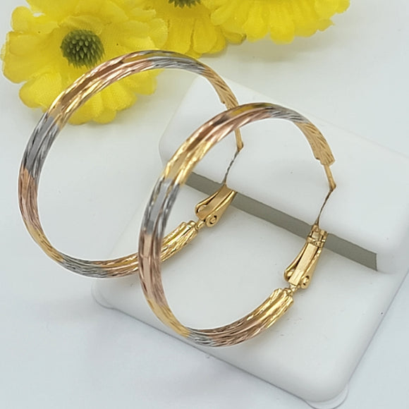 Earrings - Tri Color Gold Plated. Hoops 2 in D *Premium Q*
