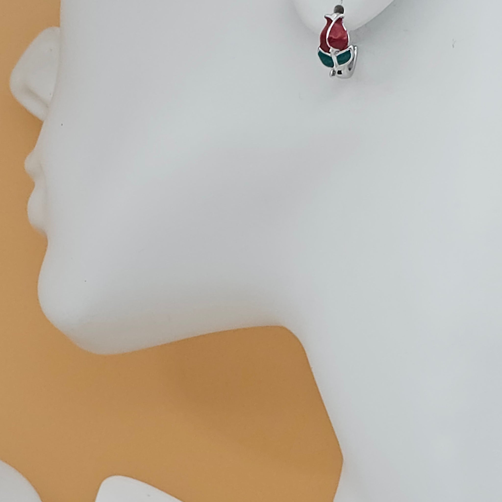 CLOSEOUT* Earrings - Rhodium Plated. Red Flower Earrings. *Premium Q*