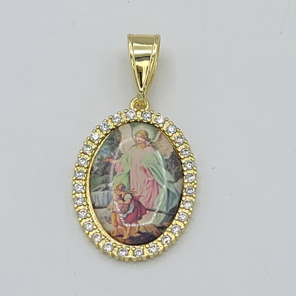 Pendants - 14K Gold Plated. Guardian Angel w/crystals. Angel de la Guarda