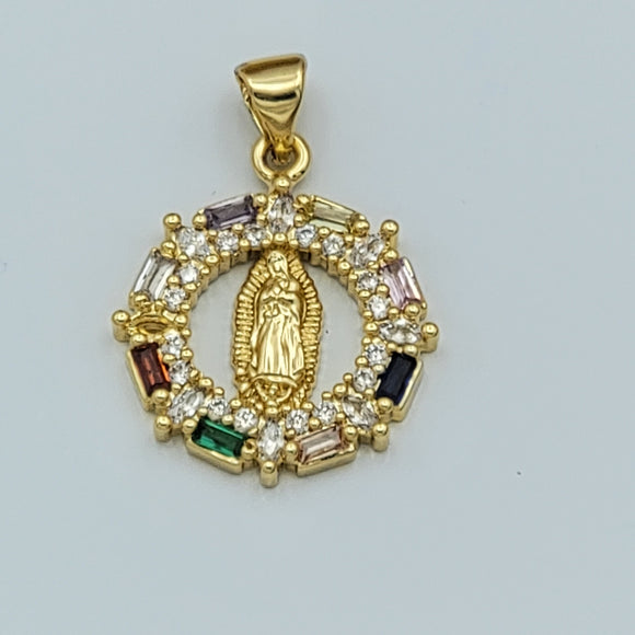 Pendants - 14K Gold Plated. Our Lady of Guadalupe. Multicolor Crystals.